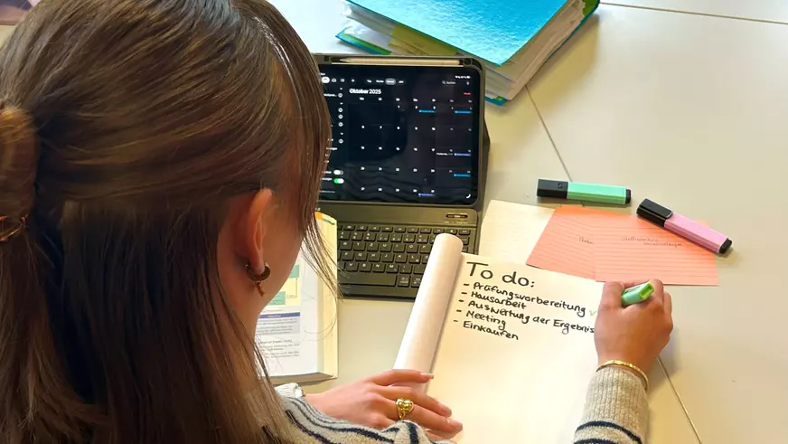 Um die Balance zwischen Studium und Arbeit zu halten, plane ich meine Woche im Voraus. Ich nutze Kalender und To-Do-Listen, um Aufgaben aus der Hochschule und dem Unternehmen sinnvoll zu koordinieren. Wichtig ist, Deadlines frühzeitig zu erkennen und Aufgaben in kleine, machbare Schritte zu unterteilen. So kann ich Lernphasen gezielt einplanen und gleichzeitig meine Arbeitsaufgaben im Unternehmen zuverlässig erledigen.